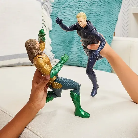 30 cm visoka figurica Aquamana otroke popelje v razburljive podvodne dogodivščine z neverjetnimi detajli. Enajst gibljivih sklepov omogoča vsako pozo, od junaških do drznih reševanj. Podroben oranžno-zelen kostum in sijoča trozob prineseta kralja Atlantide naravnost iz stripov v otroške roke.