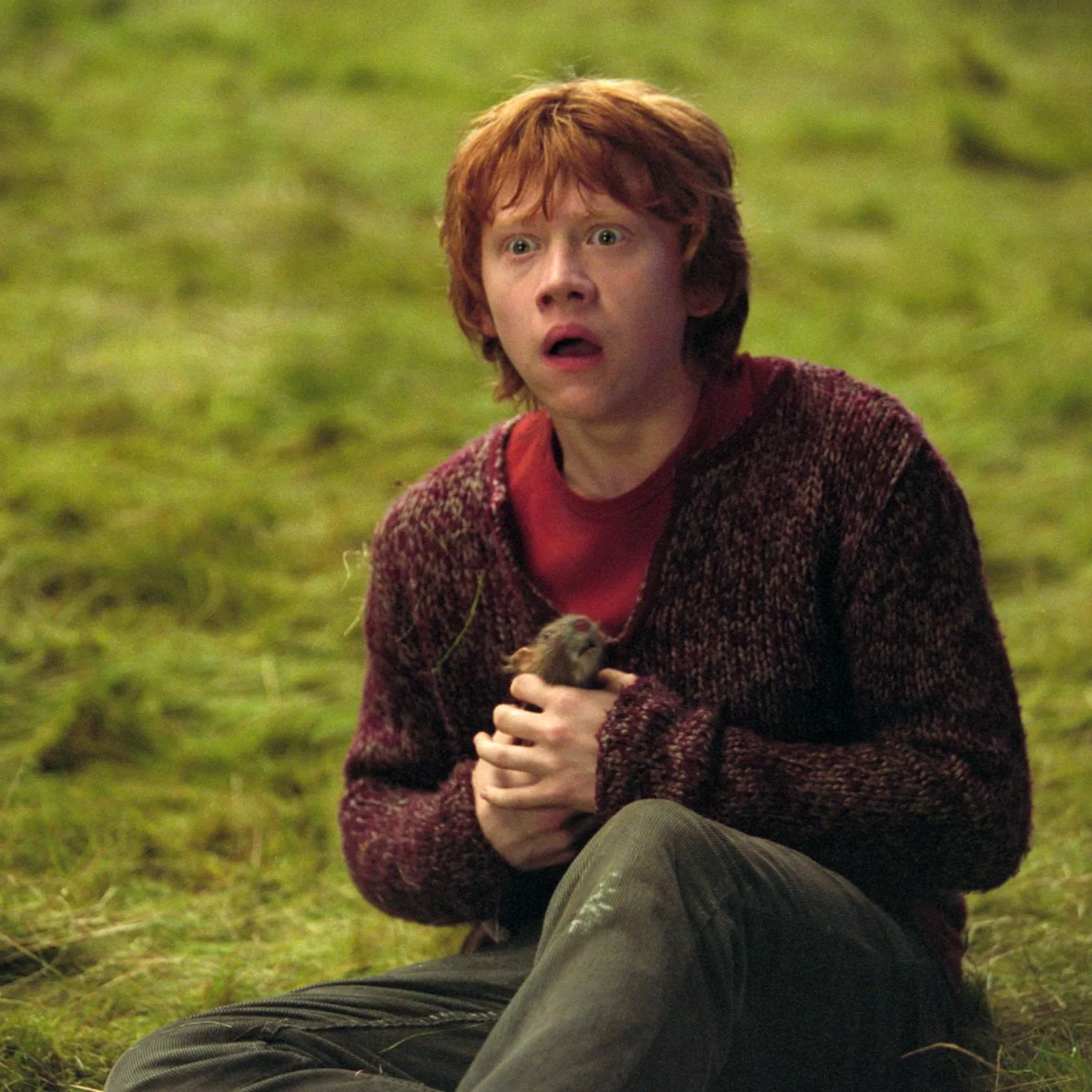 Na travniku pred Bradavičarko Ron tesno drži Glodalca, oči na široko odprte. »Ojoj, Glodalec, si slišal to? Upam, da ni spet kakšen orjaški pajek!« Miš se nervozno strese. »Ron, boš spet bežal?« pokliče Hermiona. Ron pogoltne: »Le če bodo pajki začeli peti!« Skupaj se odpravijo iskat Hagridovo izgubljeno bučo na robu Prepovedanega gozda.
