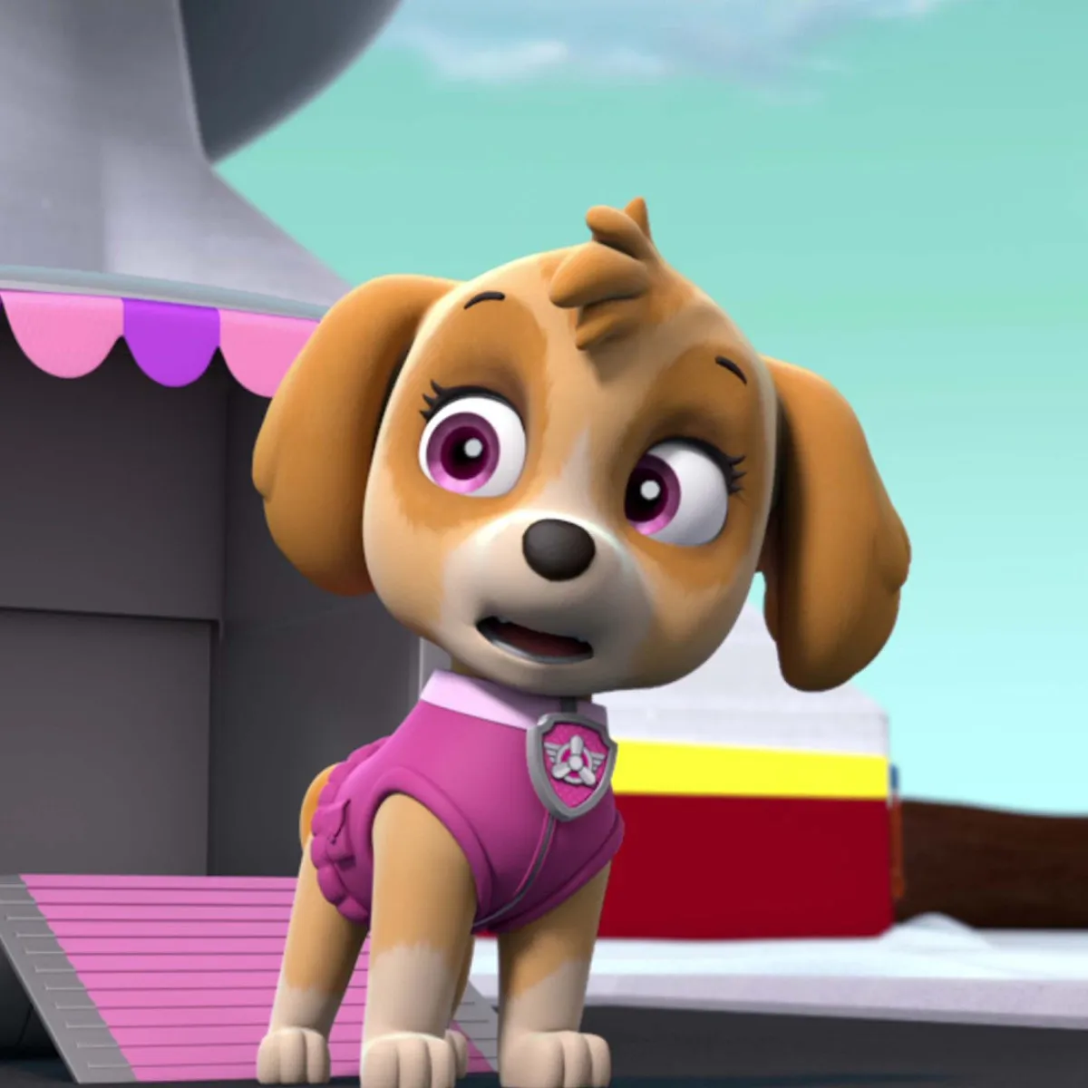 Ob vznožju stolpa Skye napne ušesa. »Je kdo rekel, da je mucek obtičal na gori?« vpraša in si popravi očala. »Pripravljena sem poleteti - nobena naloga ni prevelika, noben kuža premajhen!« Odločno steče po rampi proti reševalni akciji.