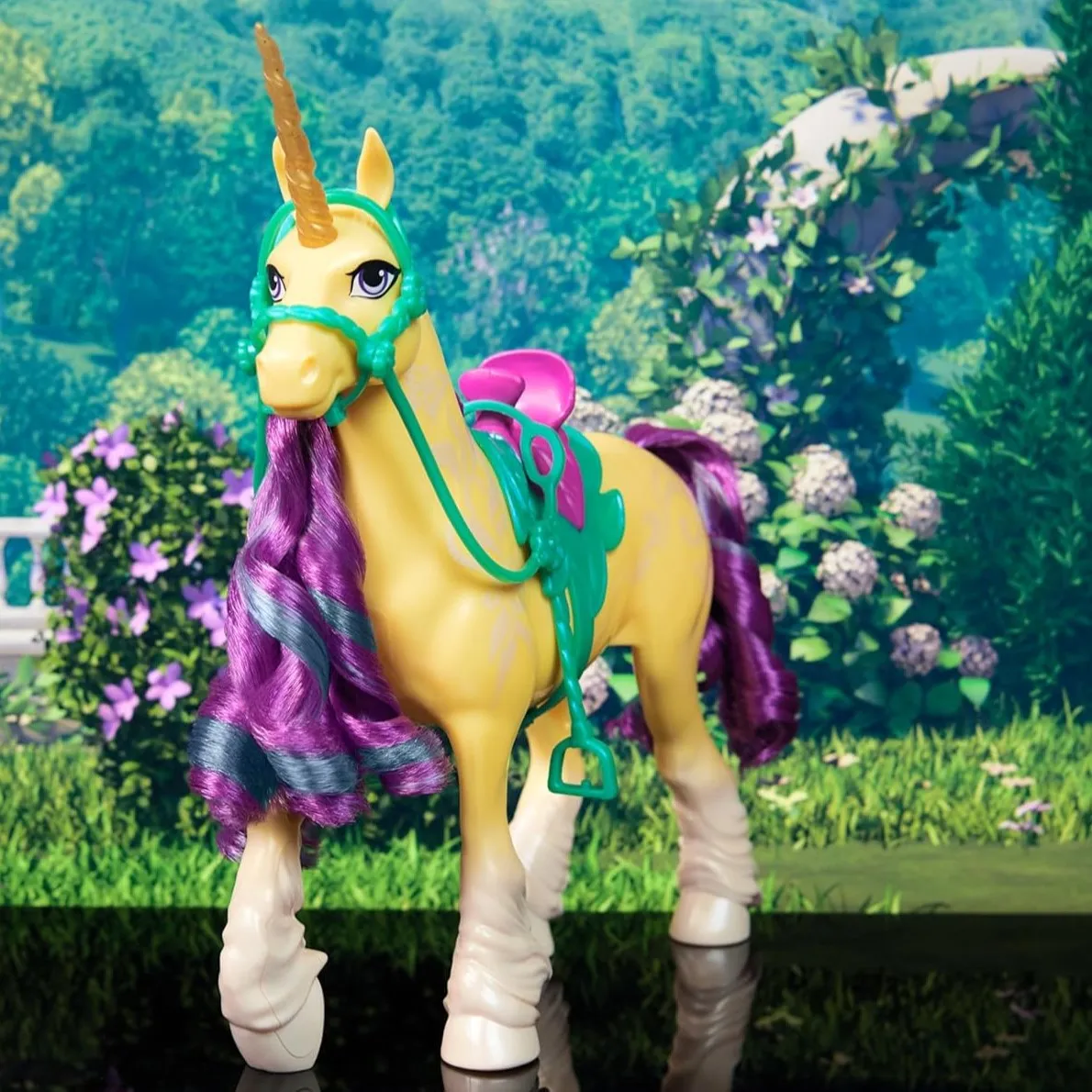 Leaf iz Unicorn Academy je čarobna figura samoroga z bleščečim rogom, bisernimi rastlinskimi znaki ter barvno grivo in repom, ki ju lahko krtačite. Otroci lahko premikajo njeno glavo, odkrivajo njeno osebnost, menjajo sedlo in uzdo ter si izmišljajo pustolovščine kot v Netflixovi risanki. Popolna velikost za majhne roke in velike sanje.